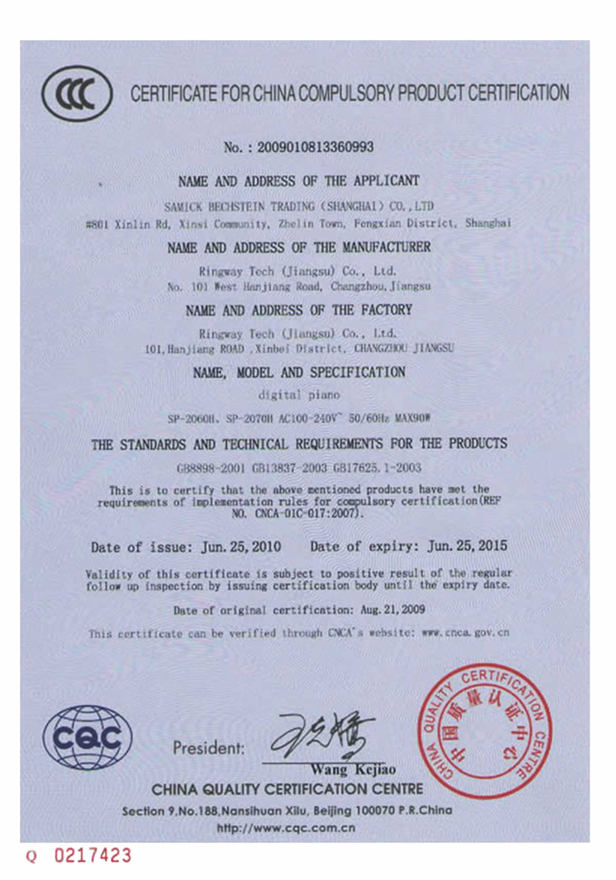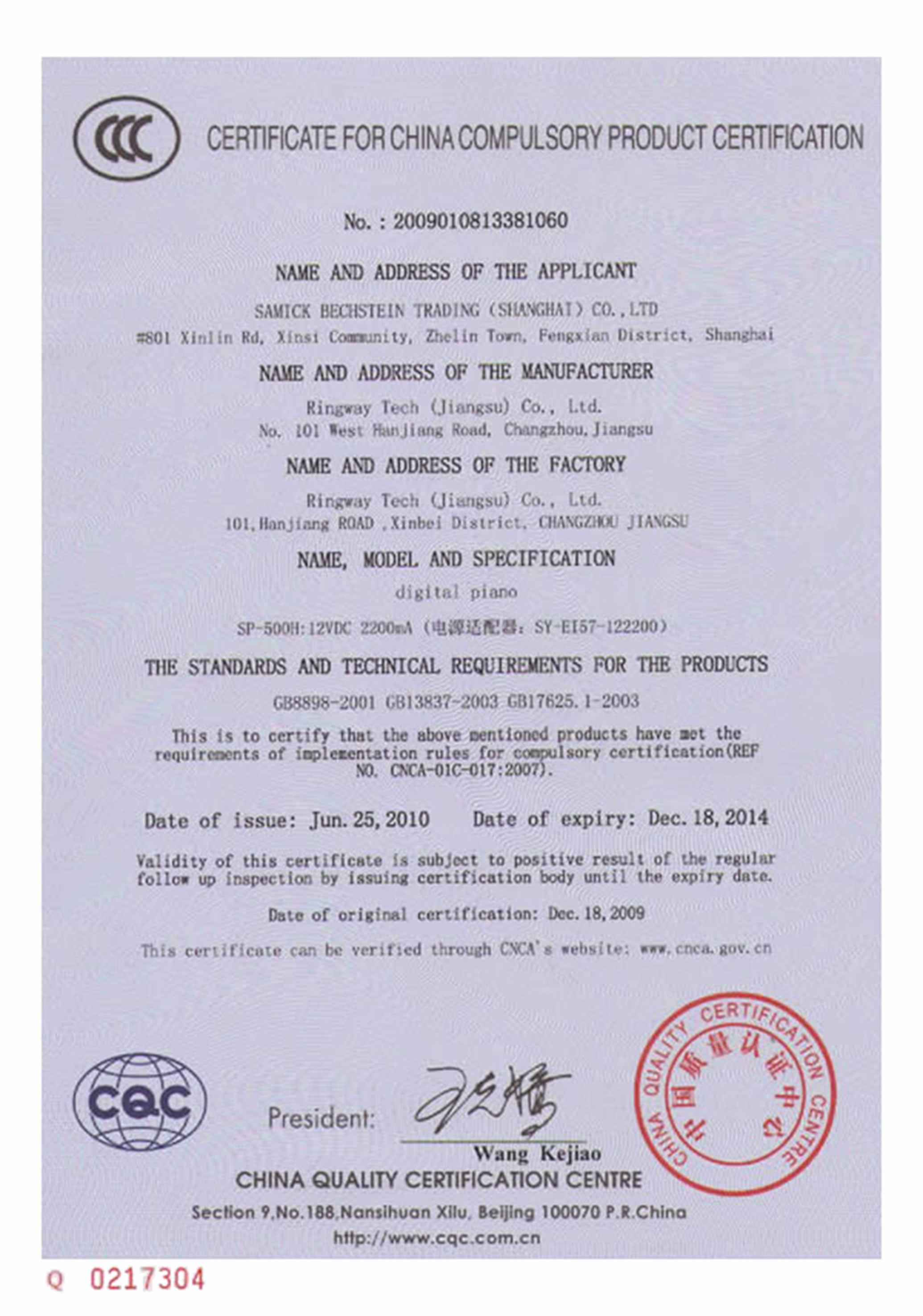 三益數(shù)碼鋼琴3C認(rèn)證-1