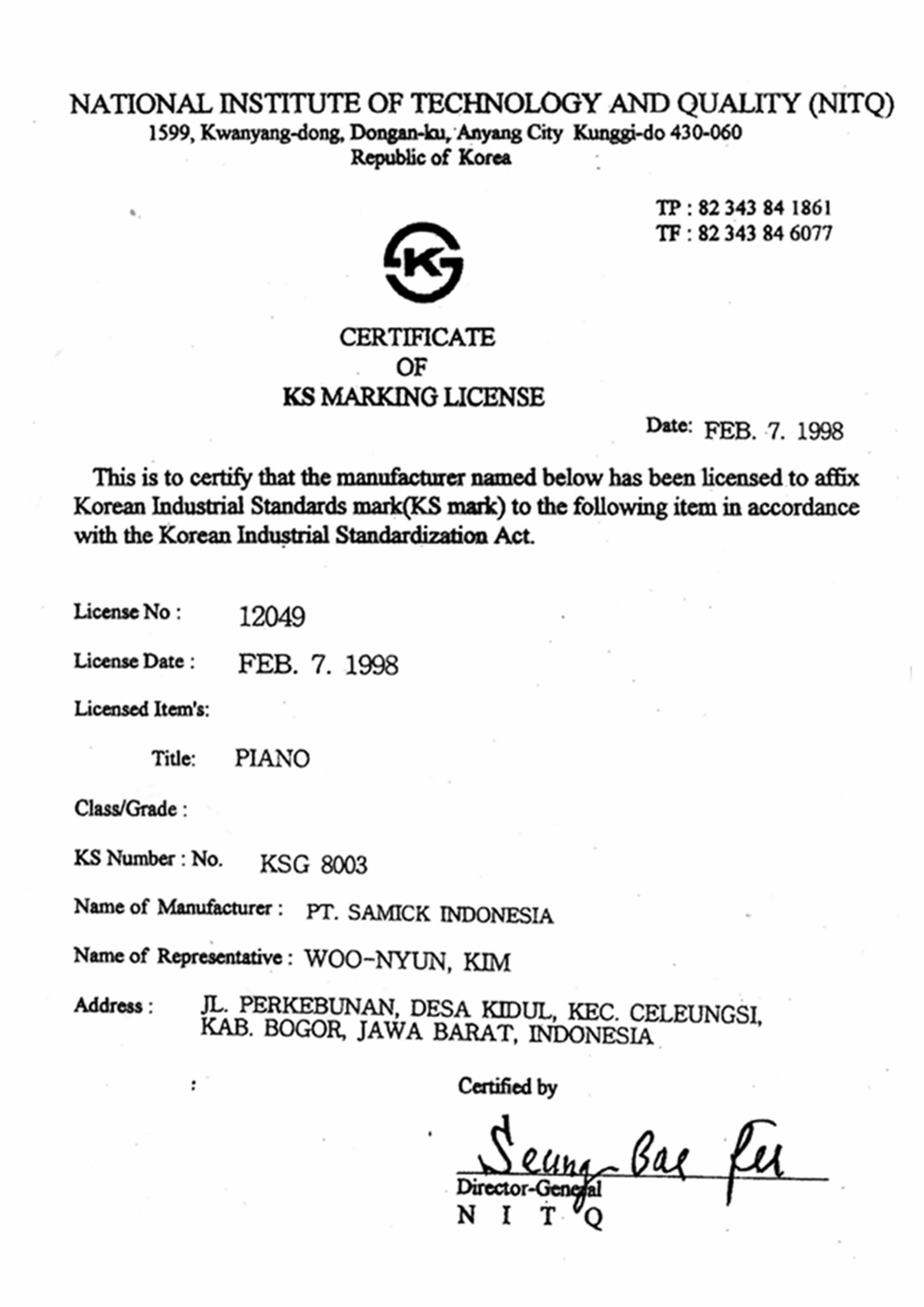 韓國(guó)產(chǎn)業(yè)規(guī)格標(biāo)準(zhǔn)認(rèn)證書(shū)(英文)